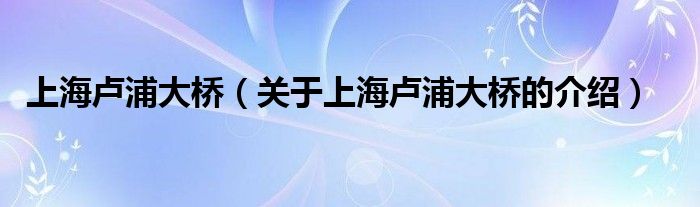 大家好,小都来为大家解答以上的问题。上海卢浦大桥,关于上海卢浦大桥的介绍很多人还不知道,现在让我们一起来看看吧!