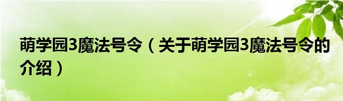 大家好,小都来为大家解答以上的问题。萌学园3魔法号令,关于萌学园3魔法号令的介绍很多人还不知道,现在让我们一起来看看吧!