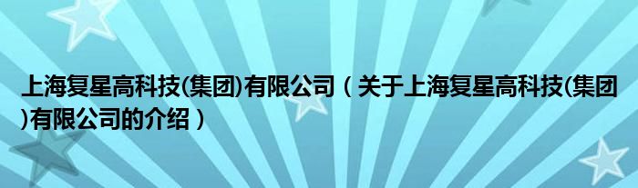大家好,小都来为大家解答以上的问题。上海复星高科技(集团)有限公司,关于上海复星高科技(集团)有限公司的介绍很多人还不知道,现在让我们一起来看看吧!