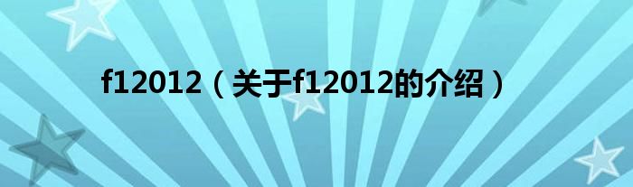 大家好,小都来为大家解答以上的问题。f12012,关于f12012的介绍很多人还不知道,现在让我们一起来看看吧!