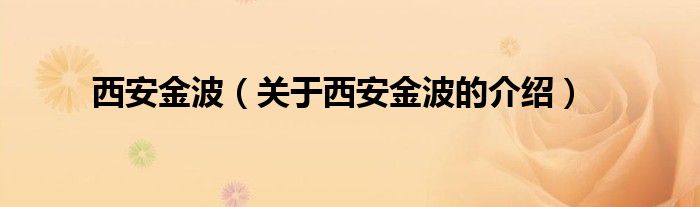 西安金波(关于西安金波的介绍)