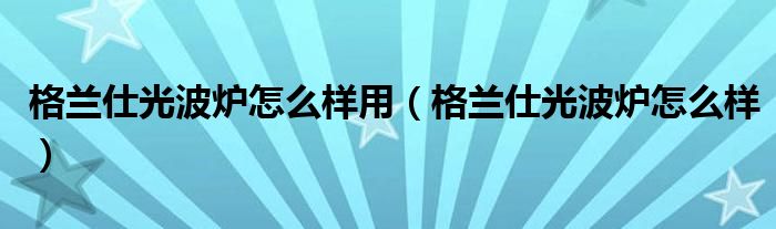以上是关于格兰仕光波炉的使用方法。希望能对大家有所帮助!