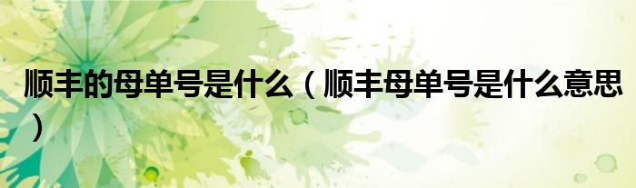 大家好,小晋来为大家解答以下问题,关于顺丰的母单号是什么,顺丰母单号是什么意思很多人还不知道,今天让我们一起来看看吧!