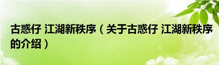 大家好,小都来为大家解答以上的问题。古惑仔 江湖新秩序,关于古惑仔 江湖新秩序的介绍很多人还不知道,现在让我们一起来看看吧!