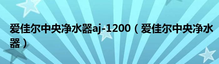 大家好,雨雨来为大家解答以上问题,爱佳尔中央净水器aj-1200,爱佳尔中央净水器很多人还不知道,现在让我们一起来看看吧!