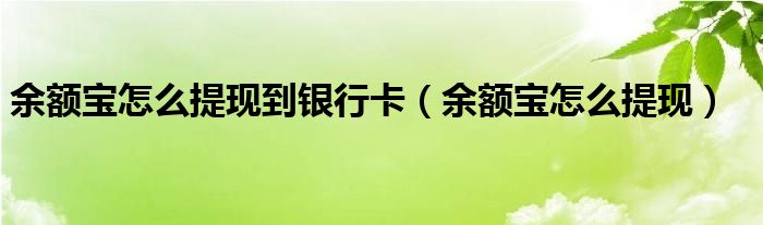 大家好,雨雨来为大家解答以上问题,余额宝怎么提现到银行卡,余额宝怎么提现很多人还不知道,现在让我们一起来看看吧!