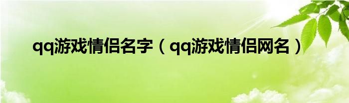 大家好,雨雨来为大家解答以上问题,qq游戏情侣名字,qq游戏情侣网名很多人还不知道,现在让我们一起来看看吧!
