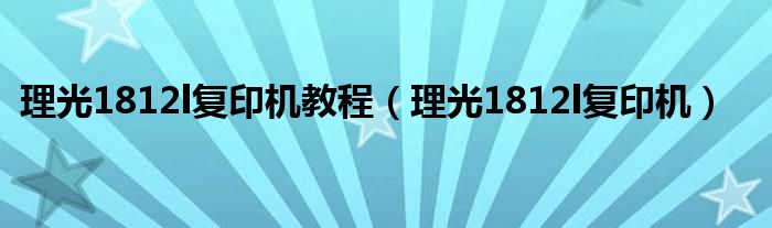 大家好,雨雨来为大家解答以上问题,理光1812l复印机教程,理光1812l复印机很多人还不知道,现在让我们一起来看看吧!
