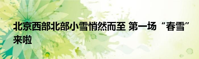 2、日前,一则“北京西部北部小雪悄然而至”引发关注。据悉,下雪啦!下雪啦!您的“春雪”已到货!北京西部北部小雪悄然而至,地面见白,十分漂亮。