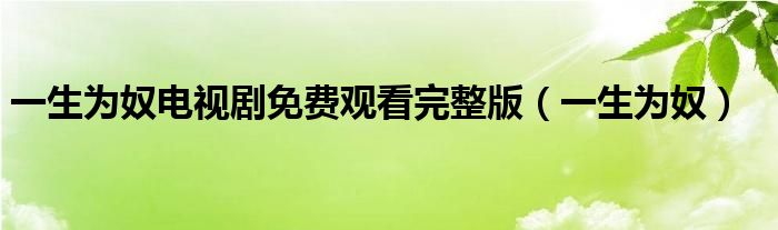 一生为奴电视剧免费观看完整版(一生为奴)