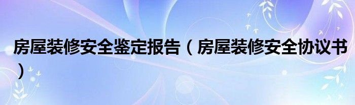 关于房屋装修安全鉴定报告,房屋装修安全协议书这个很多人还不知道,今天菲菲来为大家解答以上的问题,现在让我们一起来看看吧!