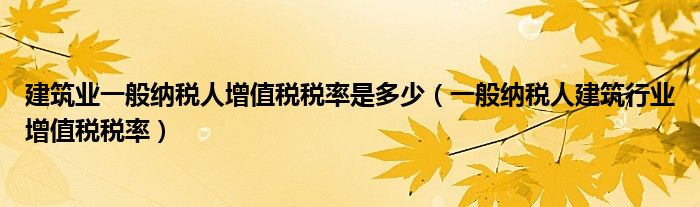 关于建筑业一般纳税人增值税税率是多少,一般纳税人建筑行业增值税税率这个很多人还不知道,今天菲菲来为大家解答以上的问题,现在让我们一起来看看吧!