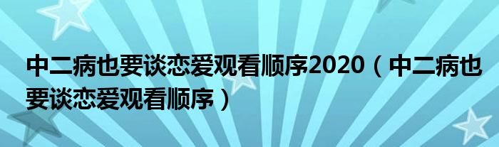 关于中二病也要谈恋爱观看顺序2020,中二病也要谈恋爱观看顺序这个很多人还不知道,今天菲菲来为大家解答以上的问题,现在让我们一起来看看吧!