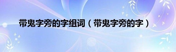 大家好,小晋来为大家解答以下问题,关于带鬼字旁的字组词,带鬼字旁的字很多人还不知道,今天让我们一起来看看吧!