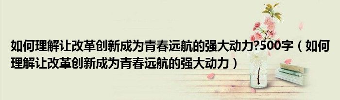 关于如何理解让改革创新成为青春远航的强大动力?500字,如何理解让改革创新成为青春远航的强大动力这个很多人还不知道,今天菲菲来为大家解答以上的问题,现在让我们一起来看看吧!