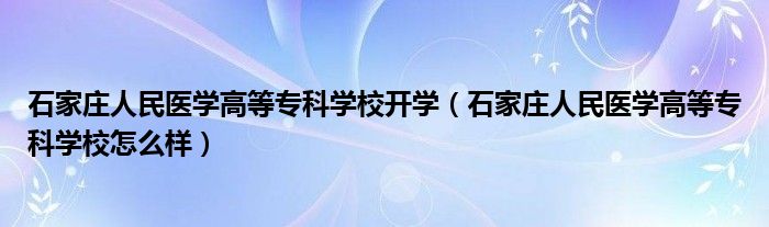 关于石家庄人民医学高等专科学校开学,石家庄人民医学高等专科学校怎么样这个很多人还不知道,今天菲菲来为大家解答以上的问题,现在让我们一起来看看吧!
