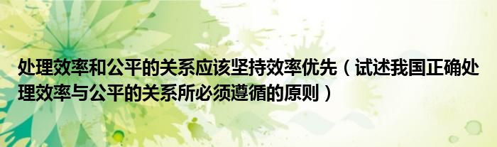 处理效率和公平的关系应该坚持效率优先(试述我国正确处理效率与公平的关系所必须遵循的原则)