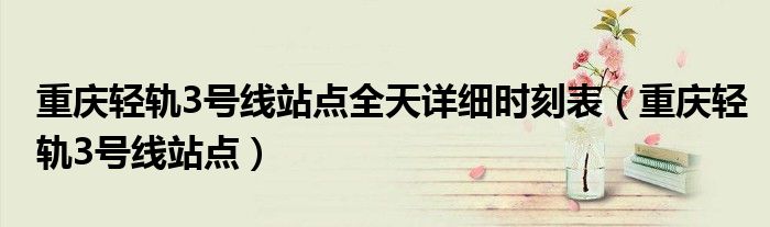 关于重庆轻轨3号线站点全天详细时刻表,重庆轻轨3号线站点这个很多人还不知道,今天菲菲来为大家解答以上的问题,现在让我们一起来看看吧!