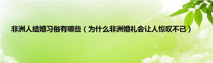 大家好,综合小编来为大家讲解下。非洲人结婚习俗有哪些,为什么非洲婚礼会让人惊叹不已这个很多人还不知道,现在让我们一起来看看吧!