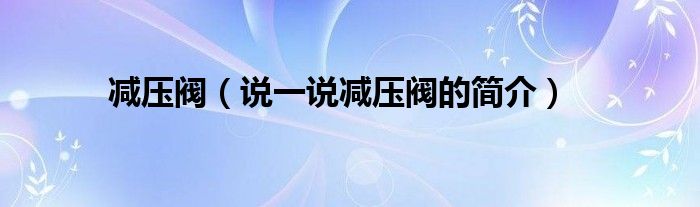 夏弥来为大家解答以下的问题,减压阀,说一说减压阀的简介,现在让我们一起来看看吧!