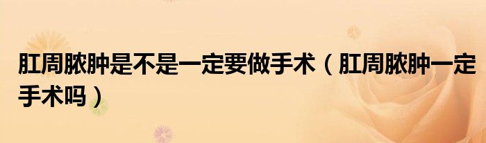 大家好,乐天来为大家解答以下的问题,肛周脓肿是不是一定要做手术,肛周脓肿一定手术吗很多人还不知道,现在让我们一起来看看吧!