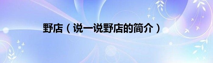 野店(说一说野店的简介)