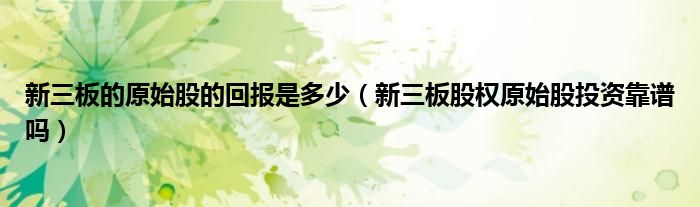 关于新三板的原始股的回报是多少,新三板股权原始股投资靠谱吗这个很多人还不知道,今天菲菲来为大家解答以上的问题,现在让我们一起来看看吧!