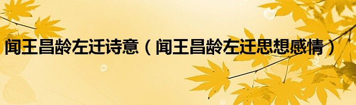 23、参考资料来源:百度百科-闻王昌龄左迁龙标遥有此寄。