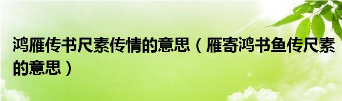 大家好,乐儿来为大家解答以下问题,鸿雁传书尺素传情的意思,雁寄鸿书鱼传尺素的意思很多人还不知道,现在让我们一起来看看吧!
