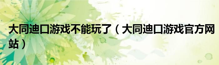 关于大同迪口游戏不能玩了,大同迪口游戏官方网站这个很多人还不知道,今天菲菲来为大家解答以上的问题,现在让我们一起来看看吧!