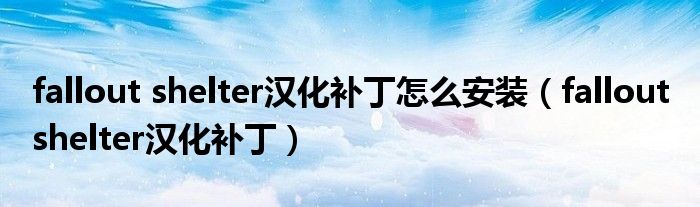 fallout shelter汉化补丁怎么安装(fallout shelter汉化补丁)