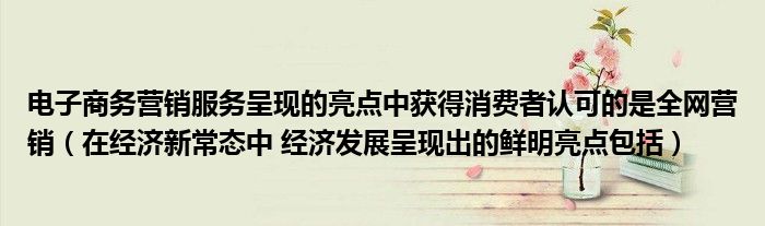 关于电子商务营销服务呈现的亮点中获得消费者认可的是全网营销,在经济新常态中 经济发展呈现出的鲜明亮点包括这个很多人还不知道,今天菲菲来为大家解答以上的问题,现在让我们一起来看看吧!