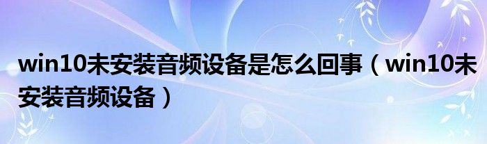 win10未安装音频设备是怎么回事(win10未安装音频设备)