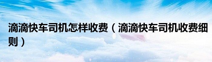 滴滴快车司机怎样收费(滴滴快车司机收费细则)