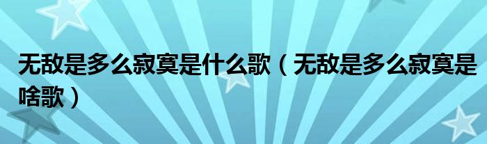 各位网友们好,我是编辑小虎,为大家解答无敌是多么寂寞是什么歌,无敌是多么寂寞是啥歌问题。一起往下看看