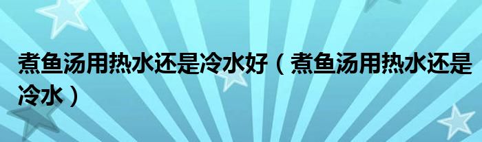 大家好,我是小科,我来为大家解答以上问题。煮鱼汤用热水还是冷水好,煮鱼汤用热水还是冷水很多人还不知道,现在让我们一起来看看吧!