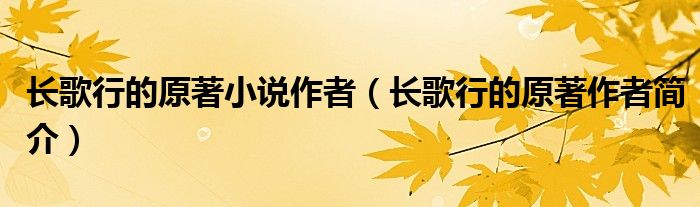各位网友们好,我是编辑小夏,为大家解答长歌行的原著小说作者,长歌行的原著作者简介问题。一起往下看看