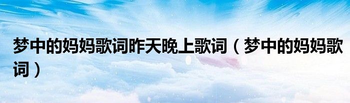 大家好,小联来为大家解答以上的问题。梦中的妈妈歌词昨天晚上歌词,梦中的妈妈歌词这个很多人还不知道,现在让我们一起来看看吧!