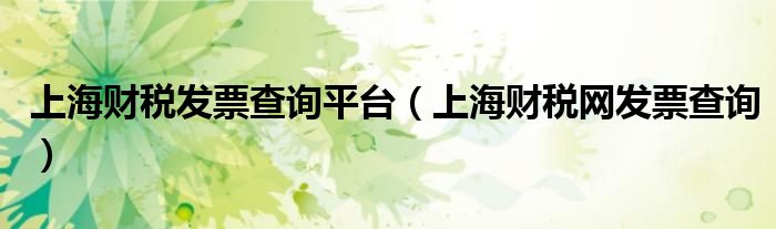 上海财税发票查询平台(上海财税网发票查询)