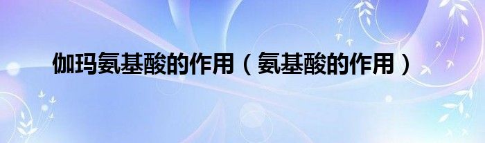 大家好,乐天来为大家解答以下的问题,伽玛氨基酸的作用,氨基酸的作用很多人还不知道,现在让我们一起来看看吧!