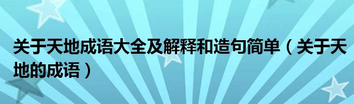 大家好,我是小科,我来为大家解答以上问题。关于天地成语大全及解释和造句简单,关于天地的成语很多人还不知道,现在让我们一起来看看吧!