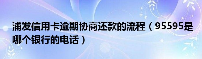 今天小饼为大家解答以下问题,关于浦发信用卡逾期协商还款的流程,95595是哪个银行的电话很多人还不知道,现在让我们一起来看看吧!