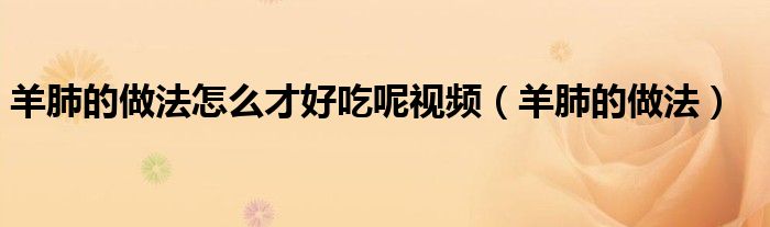 大家好,我是小科,我来为大家解答以上问题。羊肺的做法怎么才好吃呢视频,羊肺的做法很多人还不知道,现在让我们一起来看看吧!