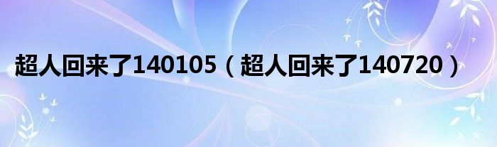 大家好,我是小科,我来为大家解答以上问题。超人回来了140105,超人回来了140720很多人还不知道,现在让我们一起来看看吧!