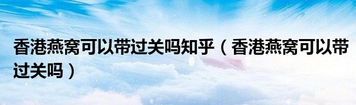 香港燕窝可以带过关吗知乎(香港燕窝可以带过关吗)