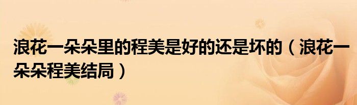 大家好,我是小科,我来为大家解答以上问题。浪花一朵朵里的程美是好的还是坏的,浪花一朵朵程美结局很多人还不知道,现在让我们一起来看看吧!