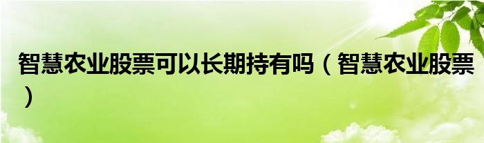 大家好,小联来为大家解答以上的问题。智慧农业股票可以长期持有吗,智慧农业股票这个很多人还不知道,现在让我们一起来看看吧!