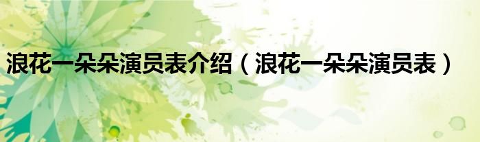 大家好,小联来为大家解答以上的问题。浪花一朵朵演员表介绍,浪花一朵朵演员表这个很多人还不知道,现在让我们一起来看看吧!