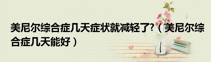 大家好,乐天来为大家解答以下的问题,美尼尔综合症几天症状就减轻了?,美尼尔综合症几天能好很多人还不知道,现在让我们一起来看看吧!
