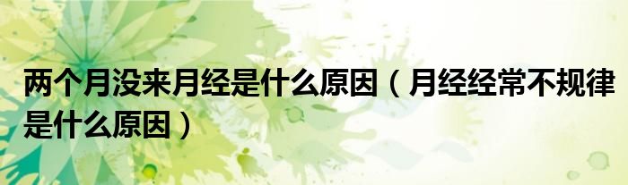 大家好,乐天来为大家解答以下的问题,两个月没来月经是什么原因,月经经常不规律是什么原因很多人还不知道,现在让我们一起来看看吧!